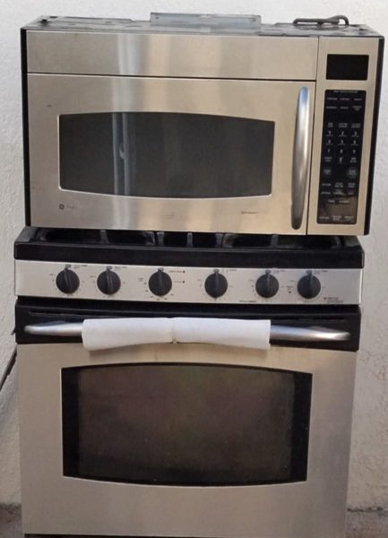 400 US. GE Profile gas range and microwave. Removed for remodel. Needs cleaning. Separate ad for the Dishwasher
