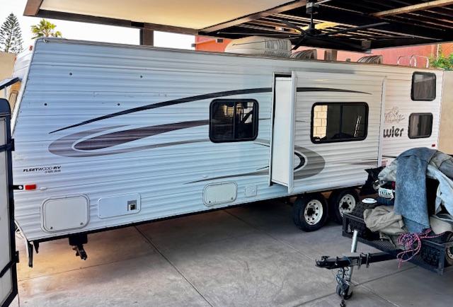 FOR SALE - 2004 Fleetwood Prowler 26' travel trailer, AZ title. It has been our "construction trailer" the last few years, with good A/C, slide-out, cold refrigerator, microwave, stove/oven, bathroom with shower. Queen bedroom in front, dinette converts to bed, sleeper sofa, 2 bunks in rear. Located in Ranchitos near H and the Oxxo. Questions call Whatsapp US +1(480)205-8285, $5000USD or MXP equivalent.