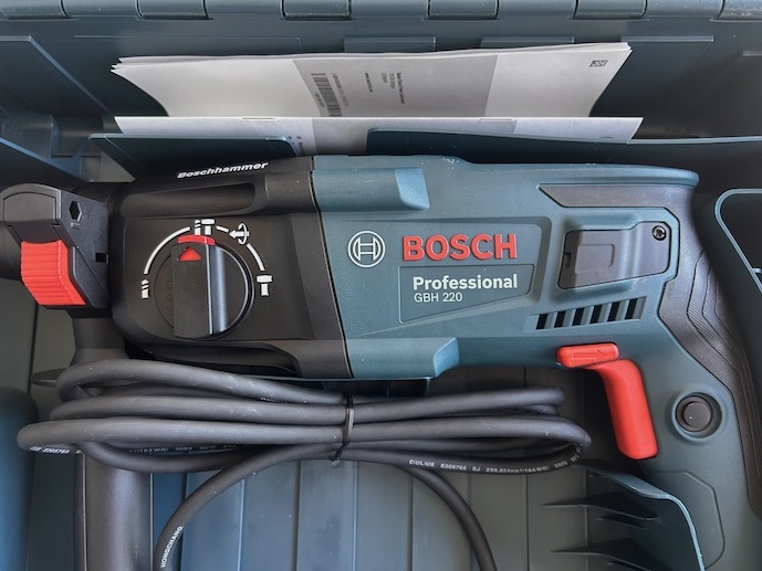 Brand new, unused quality electric SDS drill, in box and carry case. Complete with keyed chuck. Includes 1 year manufacturers' guarantee.