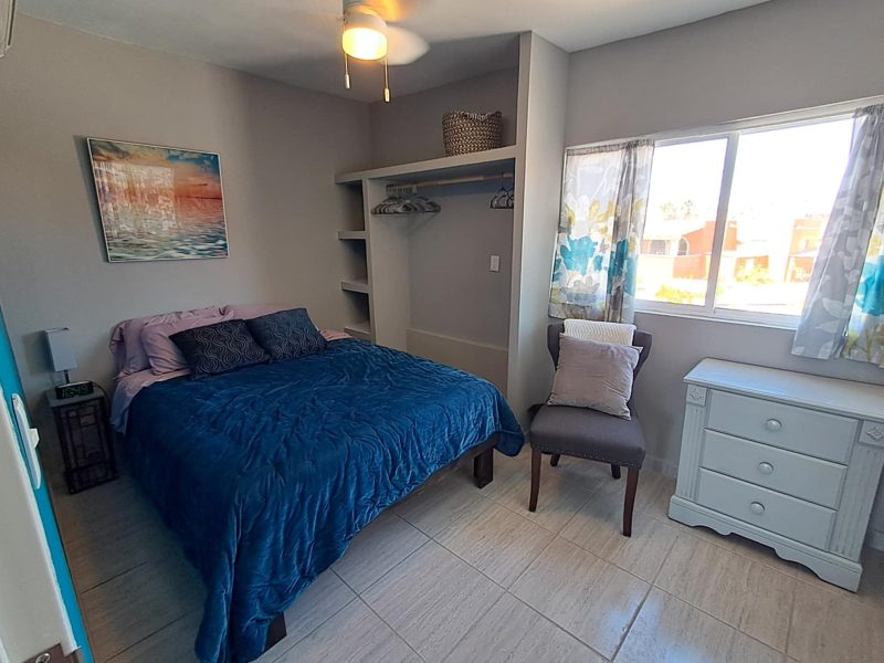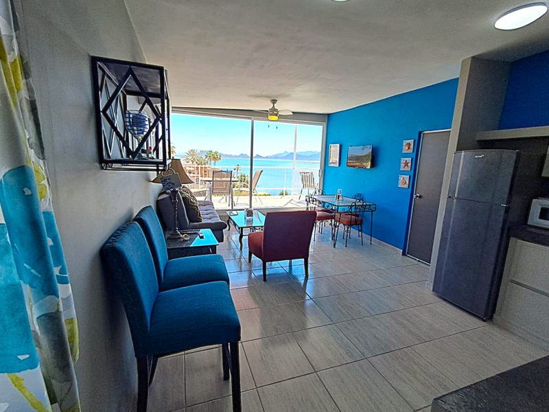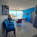 Enjoy the magic of San Carlos, Sonora, Mexico, with this centrally located, third floor, 1 bedroom 1 bath apartment. A deluxe retreat, with stunning ocean views, it is nestled in beautiful Villa Hermosa, where you will sip coffee and soak in the beauty of sunrises and unforgettable sunset dining or cocktails. In this quiet, upscale neighborhood across the street from the Sea of Cortez, you are just a short stroll down a sandy path, to the the lovely La Posada beach, for ocean dining and drinks at the wonderful restaurants, La Palapa Griega or El Mar, or for a refreshing swim while taking in the stunning views of Tetakawi. You are also just a quick walk to the main boulevard, where you can indulge in exceptional restaurants, shopping, and the vibrant, live music that San Carlos is renowned for. One of the best neighborhoods in San Carlos, serene and lovely, yet so close to all that San Carlos has to offer. This apartment is suited for one or two people, fully furnished, queen bed, Roku TV, fully equipped kitchen, A/C, hot water, in apartment laundry facility, WIFi, ocean balcony and parking, Rented by the week, month, or long term