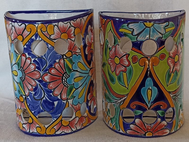 New Talavera wall sconces of this size typically retail around $80–170 USD (about 1,400–3,000 MXN) each.