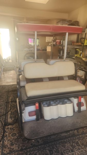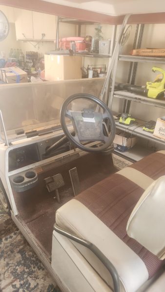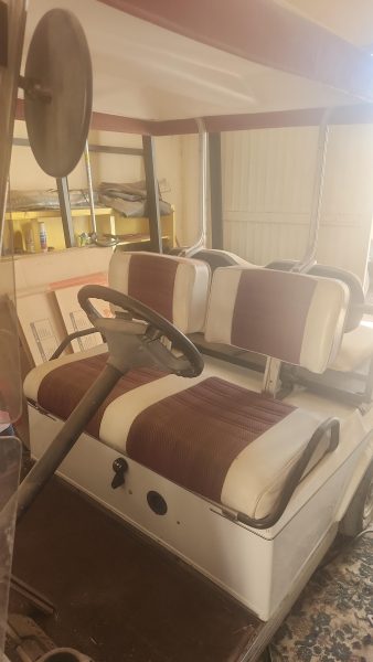 48 volt electric golf cart. Will need new batteries. Comes with 2 extra wheels. Carries 4 people with roof and windshield. Great for running around San Carlos!