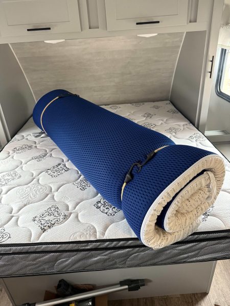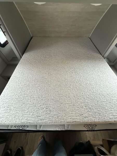 Near new RV Queen 2” mattress topper. Will work on regular queen mattress also. Purchased in September, 2025. Makes an uncomfortable bed very comfortable. Hardly used, clean and in Like New condition. Paid $170 USD on Amazon. Asking $50 USD, $65 CAD, $1,000 pesos. No RV any longer and moving out of the country.