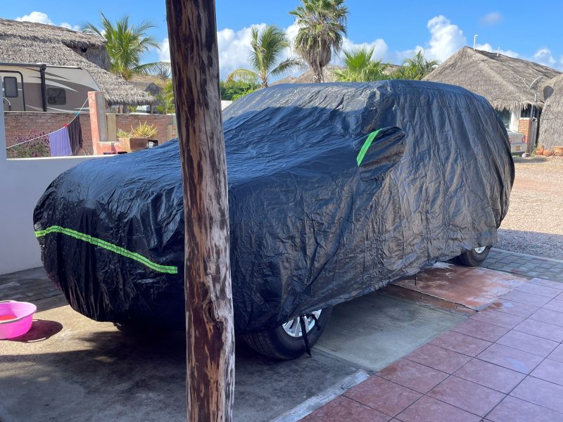 Waterproof and sun protection cover for large SUV. Like new condition. I used it on my 2022 Nissan Armada that I sold. Purchased on Amazon in October, 2024 and only used occasionally for a few months. It has been stored inside when not on the car. I paid USD $70. Asking USD $25, CAD $35 or $450 pesos. It is perfect so I bought the same kind for my Subaru Forester.