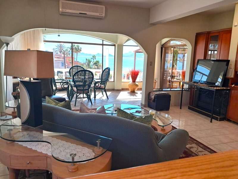 Enjoy the magic of San Carlos, Sonora, Mexico, with this centrally located, spacious, second floor, 2 bedroom 1 bath apartment. A deluxe retreat, with stunning ocean views, it is nestled in beautiful Villa Hermosa, where you will sip coffee as you soak in the beauty of magnificent sunrises, and revel in unforgettable sunset dining or cocktails. In this quiet, upscale neighborhood across the street from the Sea of Cortez, you are just a short stroll down a sandy path, to the the lovely La Posada beach, for ocean dining and drinks, at the wonderful restaurants, La Palapa Griega and El Mar, or for a refreshing swim while taking in the stunning views of Tetakawi. You are also just a quick walk to the main boulevard, where you can indulge in exceptional restaurants, shopping, and the vibrant, live music that San Carlos is renowned for. One of the best neighborhoods in San Carlos, serene and lovely, yet so close to all that San Carlos has to offer. This apartment is suited for two or three people, fully furnished, queen bed and twin bed, fully equipped kitchen, A/C, hot water, in apartment laundry facility, WIFI, Roku TV, large ocean balcony and parking,