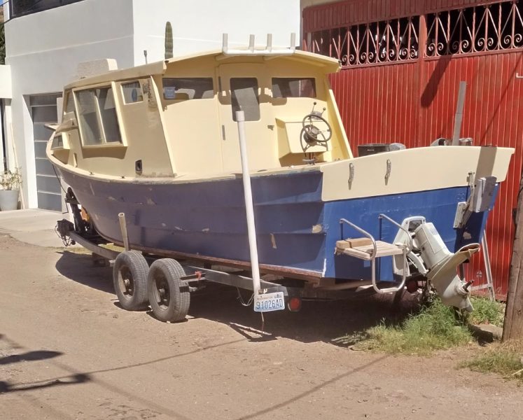$. Wood boat with 130 hp Volvo inboard. Dual station working 4 years ago. Trailer. Trailer fenders included. Been to Vancouver island many times. Needs fiberglass bottom. Recent exhaust manifold and 280 outdrive seals. See at 25 Viznaga