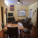 In the back is a very large, covered and screened patio. A stationary table and a metal palapa w/attached table compliment this private area for entertaining guests. There is also a large Margarita deck above the Master Bedroom with wide stairs and a handrail for added safety.