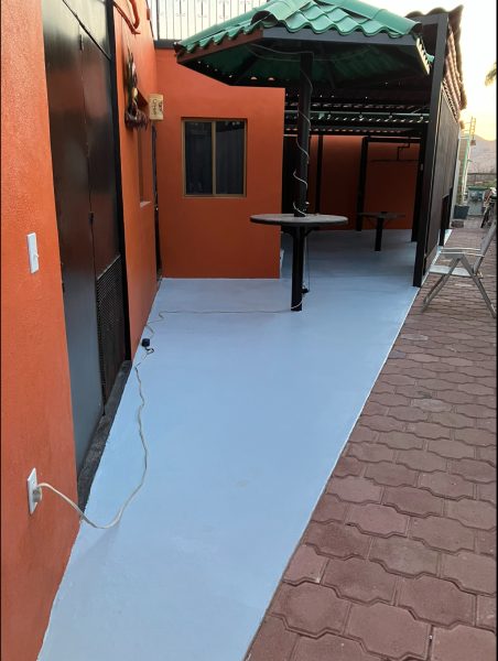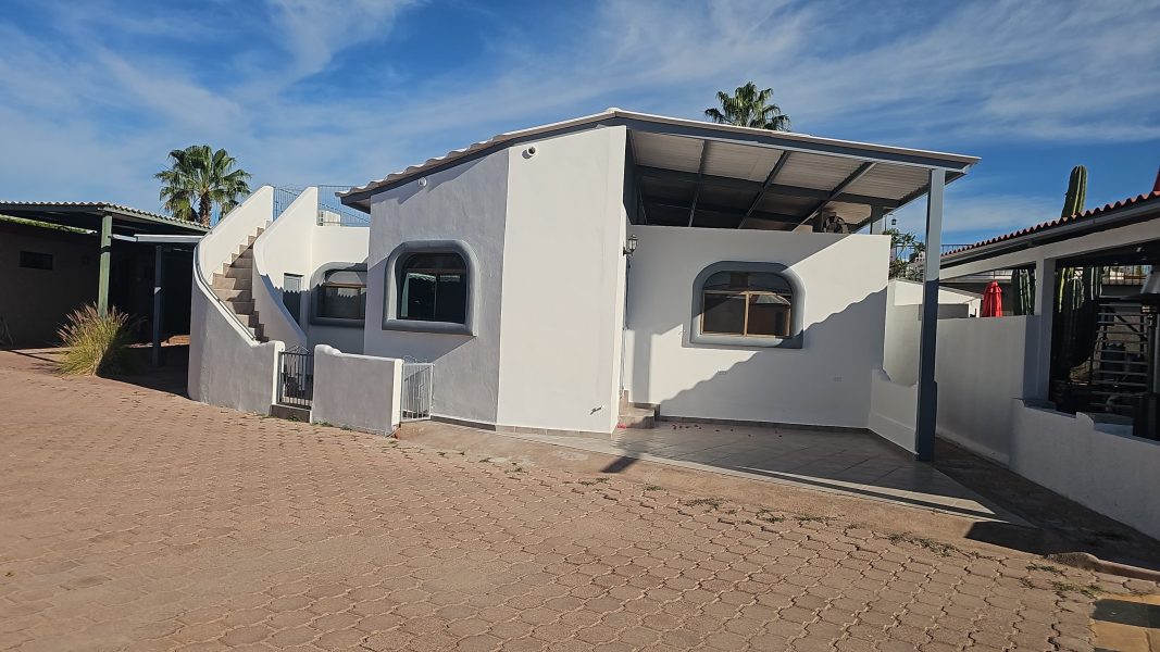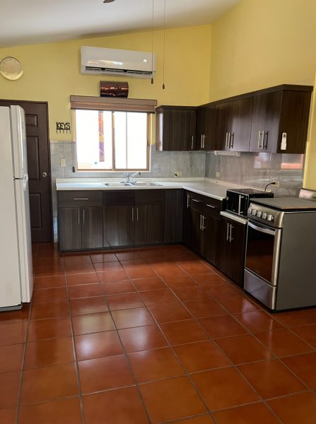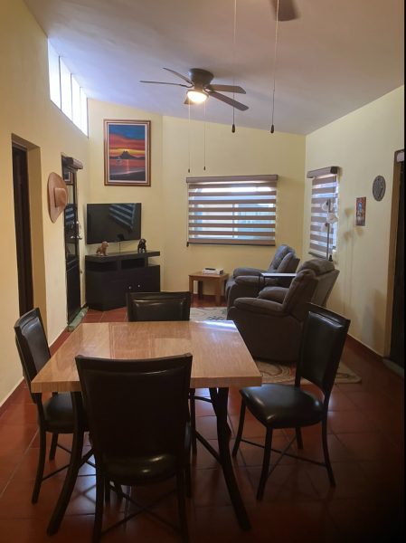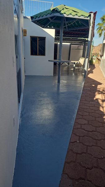 In the back is a very large, covered and screened patio. A stationary table and a metal palapa w/attached table compliment this private area for entertaining guests. There is also a large Margarita deck above the Master Bedroom with wide stairs and a handrail for added safety.