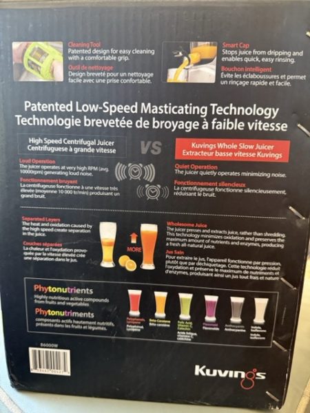 Kuvings Cold Press Juicer. Used very little, like new and in original box. Features: