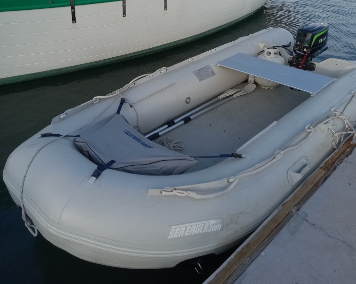 12.6R Sea Eagle inflatable boat with 5hp Lehr propane outboard. Very good condition, barely used. Comes with gear bags, seats, oars, fuel tank(full), extra impeller/water pump. Can handle up to 6 adults and up to a 30 hp motor. Thanks for looking!