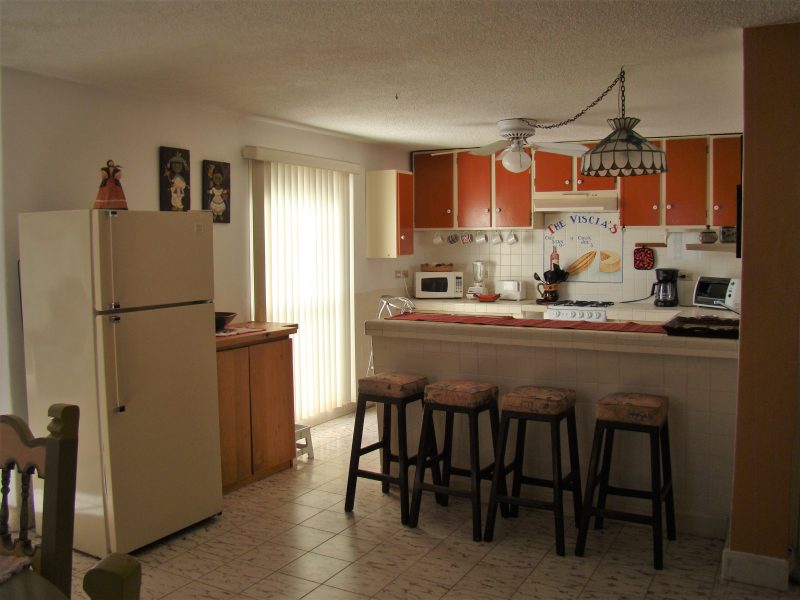 Seaview 2-bedroom, 1 small bath with shower, fully equipped kitchen, large living/dining area, laundry room, covered off street parking below. Walking distance to San Carlos Marina and Marina seca. Quiet neighborhood. More than 15 restaurants are walking distance.